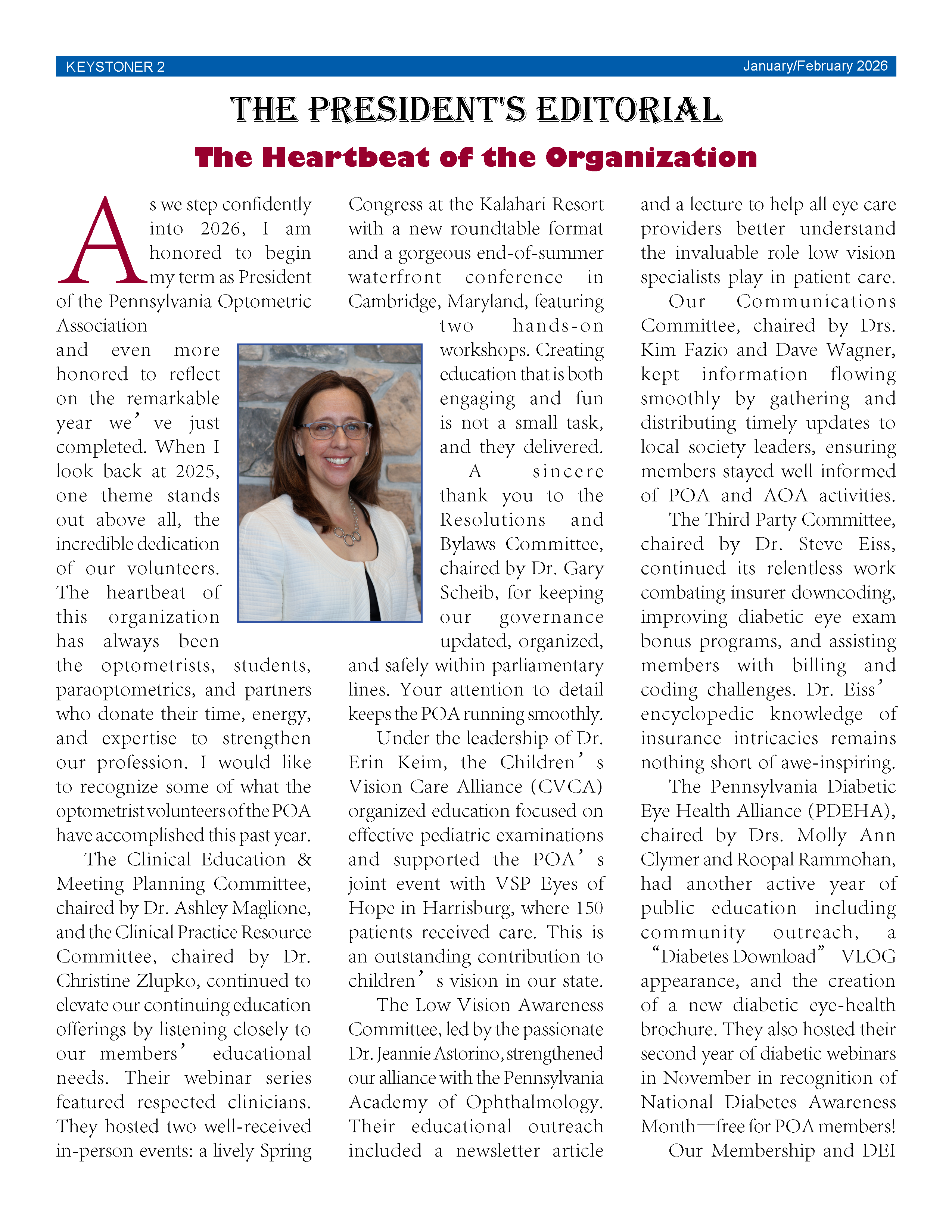 Dr. Erin Draper graduated from the University of Delaware with a Bachelor of Science degree and holds a Master of Science degree from The Pennsylvania State University. Dr. Draper earned her Doctorate of Optometry from the Pennsylvania College of Optometry at Salus University. She completed a residency in Low Vision Rehabilitation at the Feinbloom Center and a fellowship in Neuro-Ophthalmic Disease at The Eye Institute. She is active in the local and state optometric societies and is currently the President of the Pennsylvania Optometric Association.
